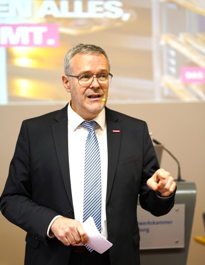 Vor dem Hintergrund der jüngsten Konjunkturumfrage berichtete der Präsident der Handwerkskammer Flensburg, Jörn Arp, von der anhaltenden Unsicherheit im Handwerk. Demnach rechnet die Mehrheit der Betriebe weiterhin mit einer gleichbleibenden Geschäftslage, während nur 30 Prozent eine Verbesserung erwarten. Die Umsätze und Auftragsbestände stagnieren oder sind rückläufig. „Der bundesweite Trend der vergangenen Quartale setzt sich auch in unserem Kammerbezirk weiter fort. Doch die Zeichen stehen auf Veränderung, und erste Hoffnung auf einen Kurswechsel schimmert durch“, so Arp.
