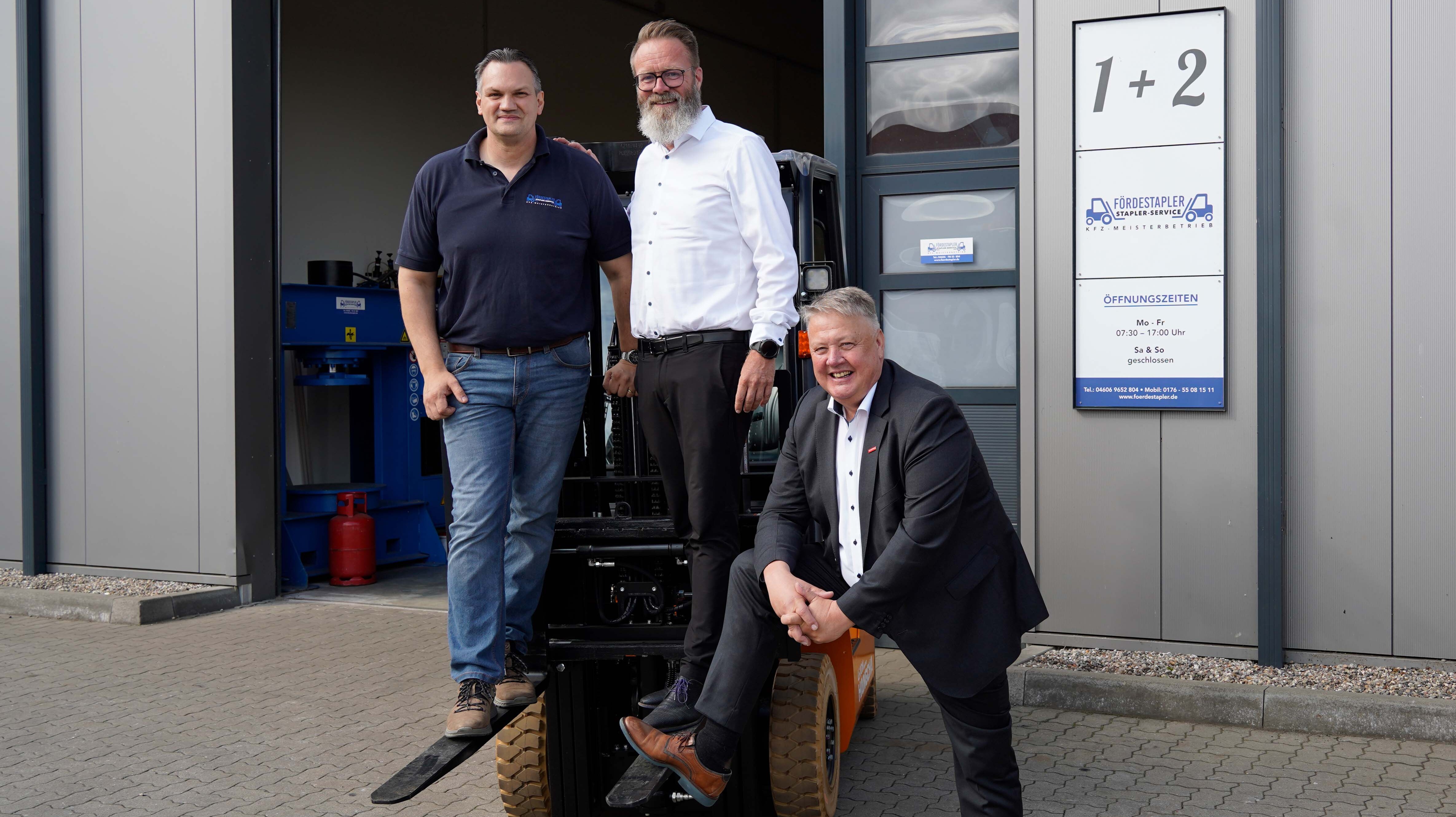 Den Auftakt machte die Fördestapler GmbH in Wanderup. Madsen zeigte sich sichtbar beeindruckt von dem, was Inhaber und Kfz-Technikermeister Tobias Majeske in nur fünf Jahren aufgebaut hat. Ob Reparaturen an Staplern und Kränen, Prüfungen aller Art oder Schulungen – Majeske bietet ein breites Portfolio und viel Know-how. „Ich habe während der Pandemie gestartet und hatte zunächst große Sorgen. Heute steht mein Betrieb auf stabilen Füßen und ist auf Expansionskurs“, sagt Majeske. Madsen ergänzt: „Wer in schwierigen Zeiten startet, darf in guten Zeiten ernten.“ Unternehmertum heiße auch durchhalten – es lohne sich. „Man arbeitet viel, gewinnt dafür aber eine Flexibilität, die man sonst selten findet.“ Auf dem Betriebshof bewältigte der Minister sogar einen eigens eingerichteten Parcours mit dem Stapler – einen Staplerschein habe er auch mal gemacht, wie er einräumte, allerdings längst nicht mehr gültig.