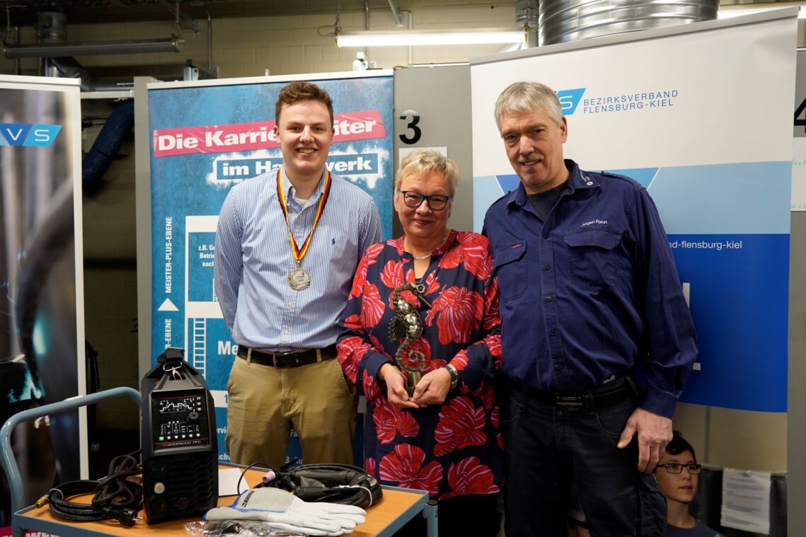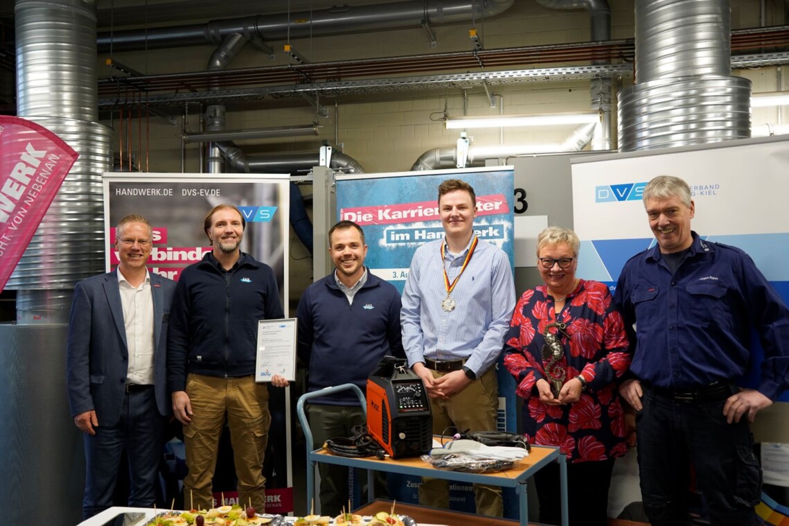 „Schweißer sind echte Fachleute und werden gesucht. In kaum einem anderen Beruf muss die Qualifikation alle sechs Monate nachgewiesen und nach drei Jahren sowohl in der Praxis als auch in der Theorie wiederholt werden“, sagt Susanne Wilkens, Vorstandsmitglied im Bezirksverband Flensburg-Kiel des DVS bei der Geschenkübergabe in der Handwerkskammer Flensburg. „Mit dem Schweißgerät möchten wir seinen Einsatz belohnen und ihn auf seinem weiteren Weg unterstützen“, so Wilkens. Auch Björn Geertz, Hauptgeschäftsführer der Handwerkskammer Flensburg freute sich für den jungen Gesellen. „Eric Schwager hat mit viel Talent gezeigt, was gutes Handwerk ausmacht. Darauf kann er zurecht stolz sein. Solche Leistungen helfen dem gesamten Handwerk, denn sie zeigen, was für tolle junge Menschen wir haben und was mit den eigenen Händen alles möglich ist.“ Schwager zeigte sich überwältigt von dem Geschenk: „Damit habe ich wirklich nicht gerechnet.“ Für den 23-Jährigen geht es jetzt erst einmal zum Arbeiten in die Schweiz und dann auf die Meisterschule. „Ich möchte den nächsten Schritt machen und noch besser werden. Aber vorher freue ich mich auf eine Auszeit und möchte arbeiten, Erfahrungen sammeln und etwas Geld verdienen.“
