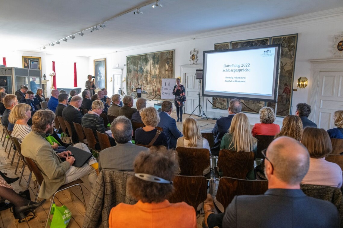 Glücksburg/Flensburg. Samarbejdet i den tysk-danske grænseregion må anses for at være eksemplarisk. I praksis har det dog gentagende vist sig, at grænsen også medfører begrænsninger. For at kunne tale med repræsentanter for institutioner, virksomheder, erhvervsfremmende selskaber og forvaltning om konkrete udfordringer og finde fremtidige pragmatiske løsninger i størst muligt omfang, har IHK Flensburg, Handwerkskammer Flensburg og Region Sønderjylland-Schleswig sammen valgt en ny tilgang med "Slotsdialogen”. Omkring 70 mennesker var mødt frem til premieren på slottet i Glücksburg i dag.
