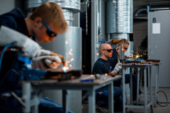In den großzügig ausgestatteten DVS-Schweißwerkstätten der Handwerkskammer Flensburg können Teilnehmende in allen modernen Schweißverfahren geschult werden. Dabei kommen die gängigsten Halbzeuge, Werkstoffe, Materialstärken und Schweißpositionen zum Einsatz.